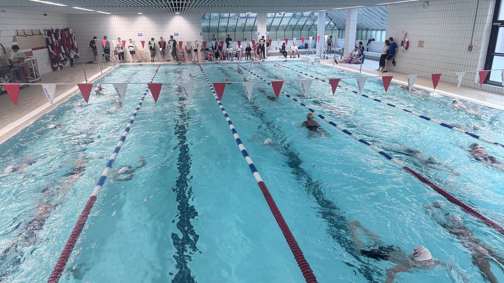 Schon ab 8:00 Uhr ging es turbulent los. Beim Check-in wurden Badekappen und Startnummern verteilt und bei der Einweisung die letzten Fragen geklärt. Kurz nach 9:00 Uhr starteten die knapp 60 Schwimmerinnen und Schwimmer unter großem Applaus der Zuschauer ins Wasser. Für jeden gab es die richtige Bahn – von der gemütlichen Bahn bis zur Highspeed-Bahn für die Schnellsten. Wer Kilometer sammeln wollte, fand seinen Platz genauso wie jemand, der einfach ins Ziel kommen wollte.