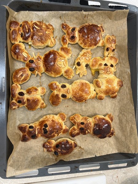 Die Stimmung? Eine Mischung aus hochkonzentrierter Stille und begeistertem Geplapper. Und natürlich wurde zwischendurch genascht. „Qualitätskontrolle“ nennt man das ganz professionell. Ganz nebenbei wurden zwischen Schneidebrett und Rührschüssel neue Freundschaften geschlossen – das beste Rezept für ein starkes Vereinsleben. Am Ende saßen alle stolz wie Bolle am gemeinsamen Tisch und ließen sich die selbstgemachten Kreationen schmecken. Aber ein echter Koch räumt auch auf! Beim gemeinsamen Abwaschen wurde bewiesen, dass Teamwork auch am Spülbecken funktioniert. Glücklich, satt und mit ihren selbstgemachten Osterhasen in der Tüte traten die Kids schließlich den Heimweg an.